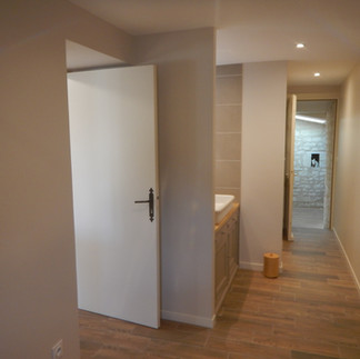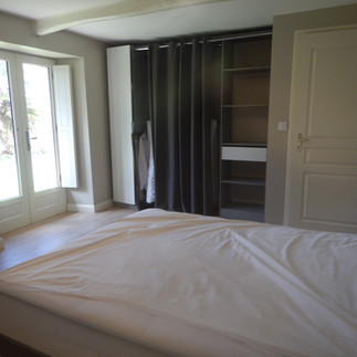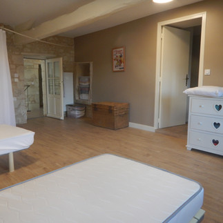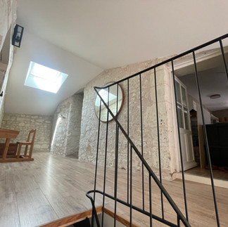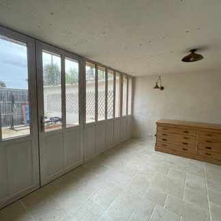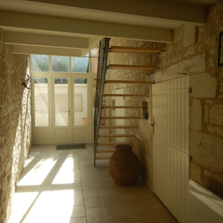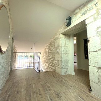 Maison de caractère rénovée comprenant au RDC : Un hall d'entrée cathédrale, un dressing, une salle de bain avec wc et buanderie, un cellier, une cuisine aménagée, un salon avec cheminée insert bois et un atelier d'artiste pouvant servir de pièce à vivre.