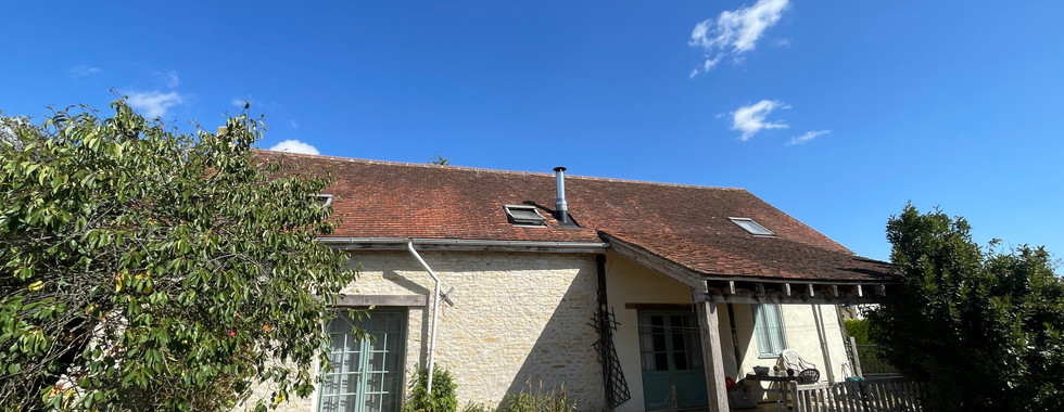 Chauffage avec poêle à bois et appoint électrique, ballon eau chaude électrique, fenêtres bois double et simple vitrage, fibre, tout à l'égout.